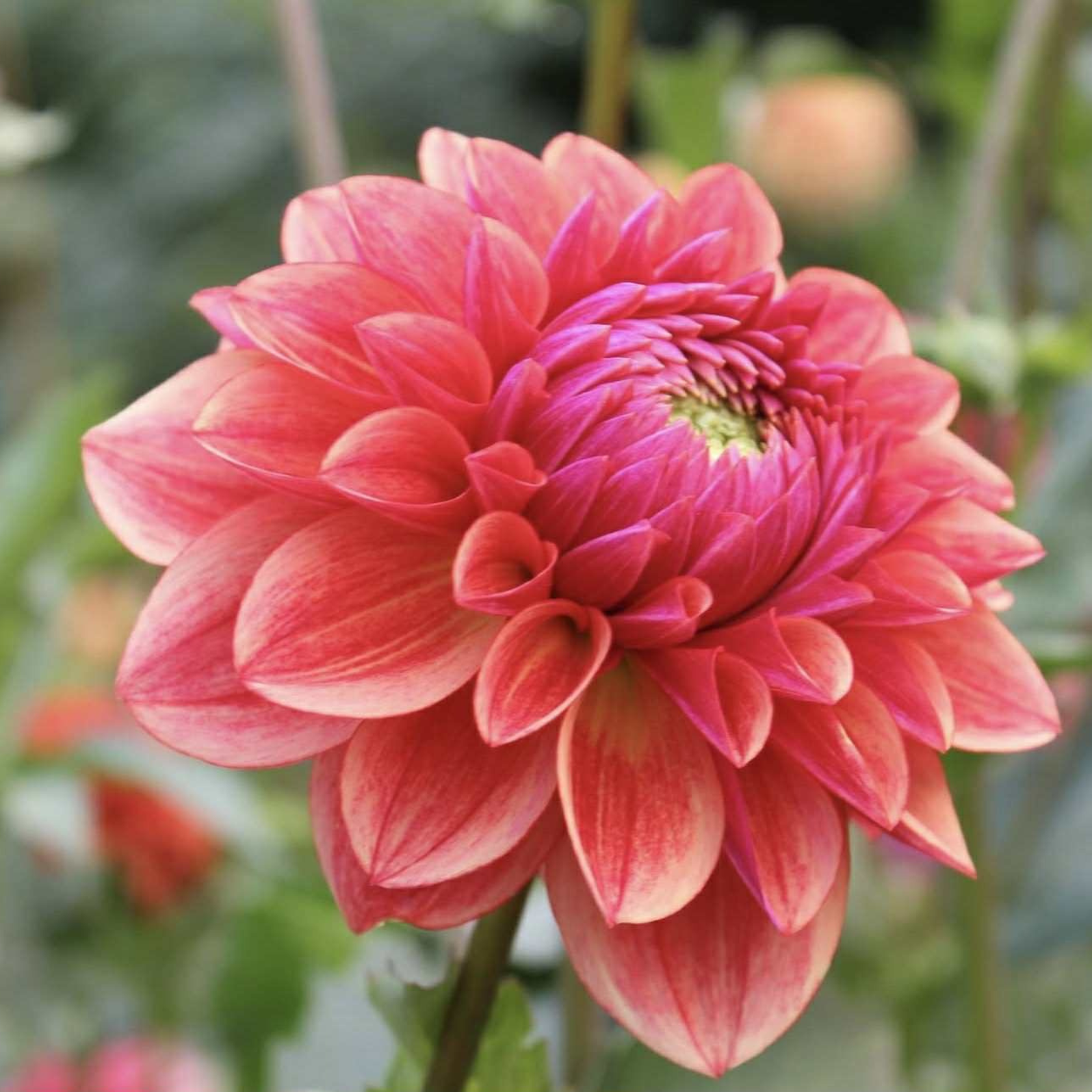 All That Jazz has rich raspberry coral blooms with warm cream edges. It's an absolutely stunning dahlia. A steady rebloomer all season long,