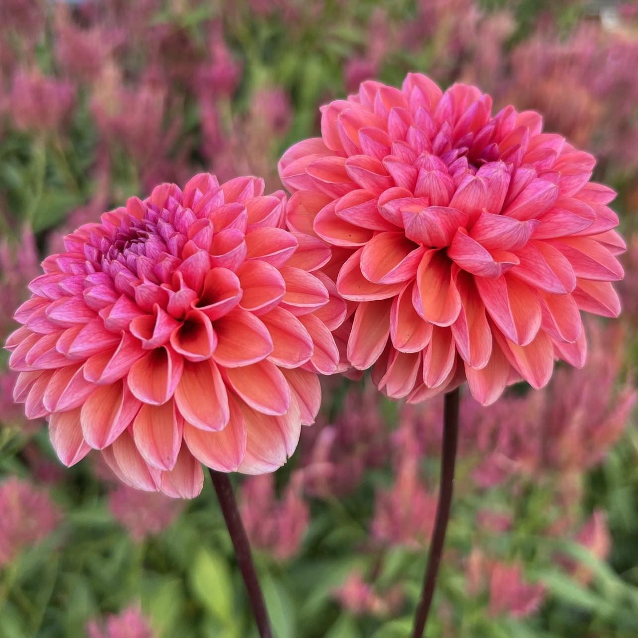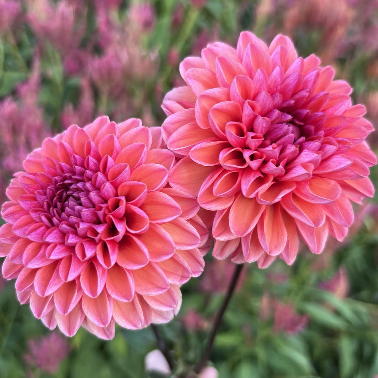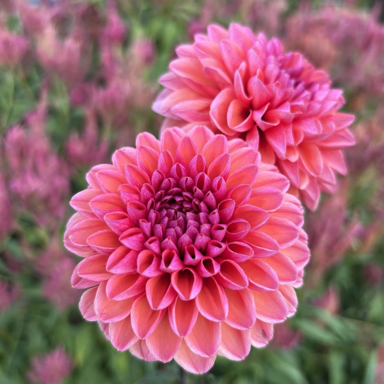 Dahlia Daisy Duke is a lovely cut flower dahlia that we really enjoyed adding to our bouquets. It's a coral-peach bloom with a lilac center that complements many colour schemes and fills out bouquets nicely.