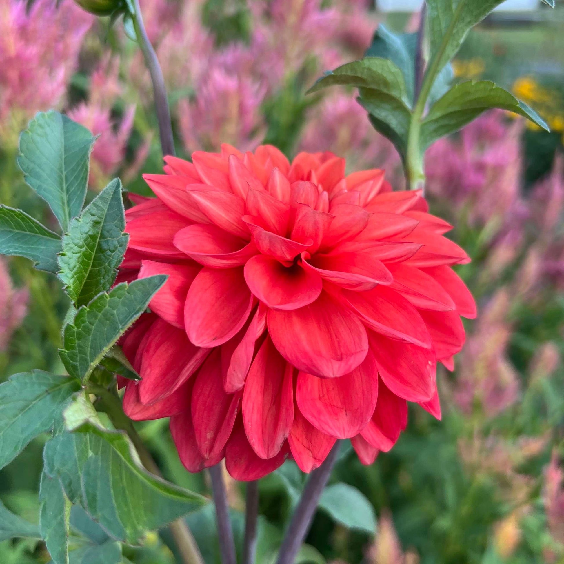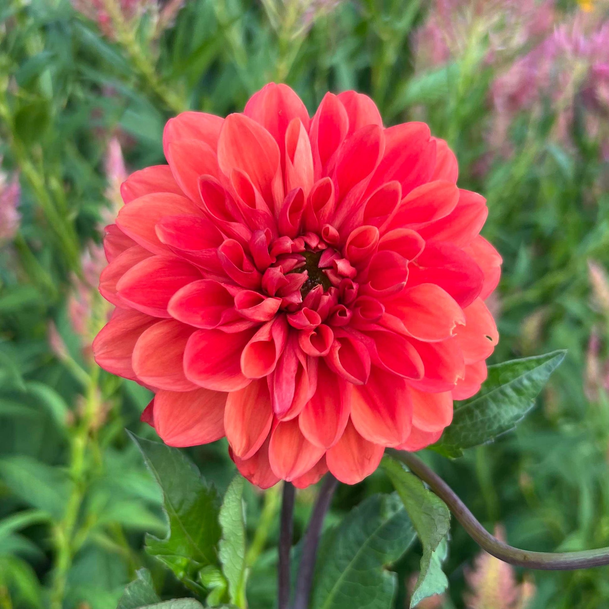 If you love flame orange and lots of blossoms, Deputy Bob is the one for you! This dahlia has good stems with numerous 4 inch blossoms. Good for cutting.
