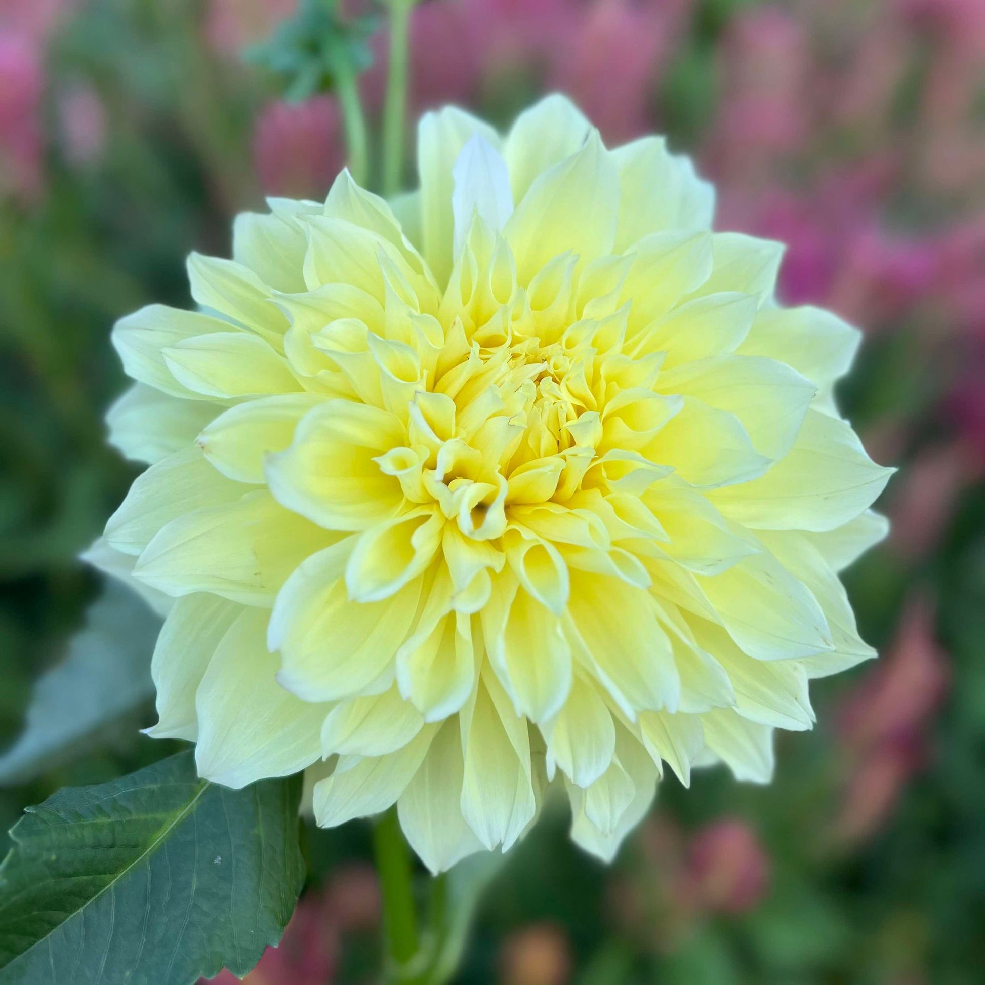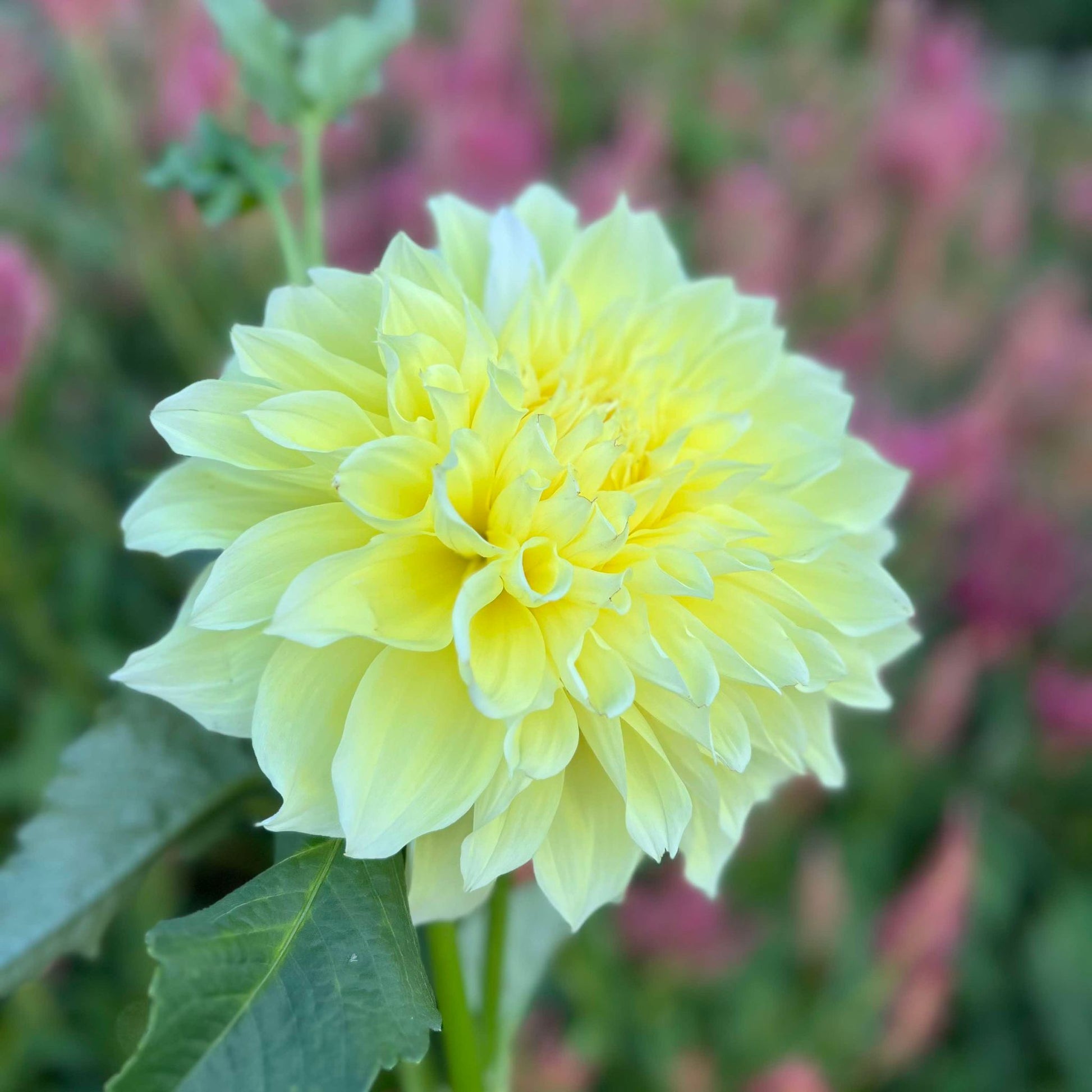 Perhaps the largest of all, this giant Dahlia or Dinnerplate Dahlia, features huge and magnificent, bright sunny yellow blossoms. The impressive fully double flowers of 'Kelvin Floodlight' up to 10-12", are not top-heavy and remain upright and straight, even when it rains. Blooming massively from midsummer until frost, this dahlia grows up to 36-48" tall.