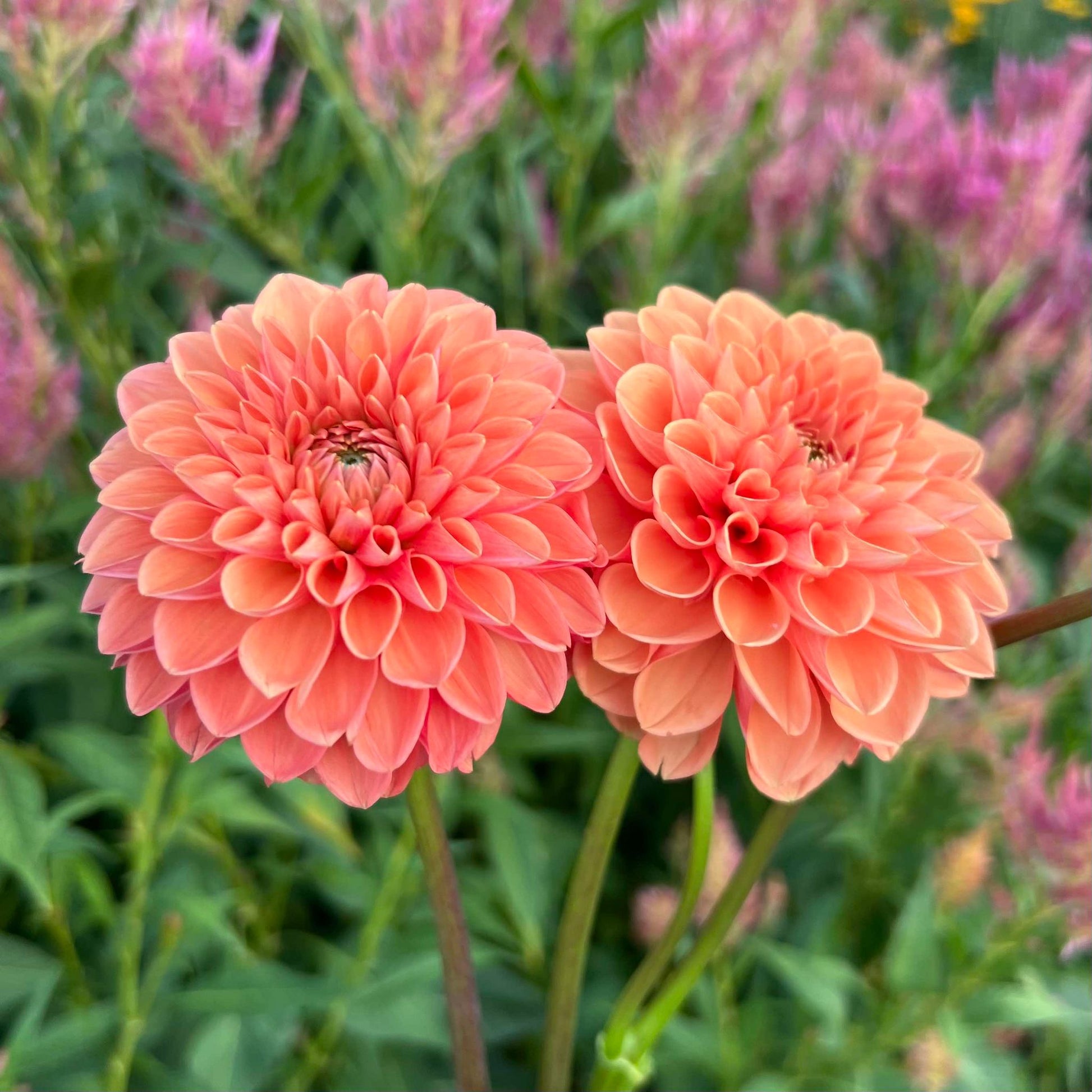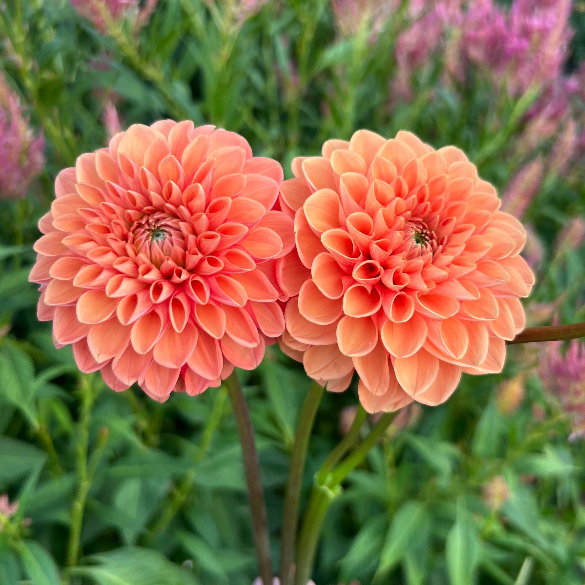 Maarn is such a fun Ball Dahlia with a perfect form. With glowing shades of apricot and tangerine to warm up your garden, its proven to be an essential addition to summer and fall-themed bouquets.